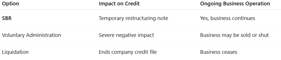 Yes, Small Business Restructuring may appear on your business credit file, but it will not damage your personal credit score unless personal guarantees are triggered. Compared to the alternatives like liquidation, SBR offers a far more business-friendly outcome, especially for viable businesses aiming to survive and grow.