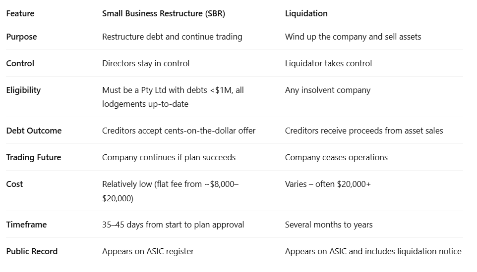 Small Business Restructure (SBR) vs. Liquidation: What’s the Difference?